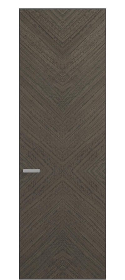 Полотно Rift в скрытом алюминиевом коробе становится полноценным элементом декора. В коллекции представлено 9 моделей дверей в высоте до 3 метров. Рисунок раскладки шпона варьируется от простого до сложного. «Рубашка» для каждого полотна подбирается вручную по цвету, текстуре и фактуре.