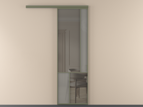 Во всех алюминиевых перегородках, независимо от типа установки, используется компланарный раздвижной механизм, благодаря которому декоративная крышка и полотно находятся в одной плоскости.