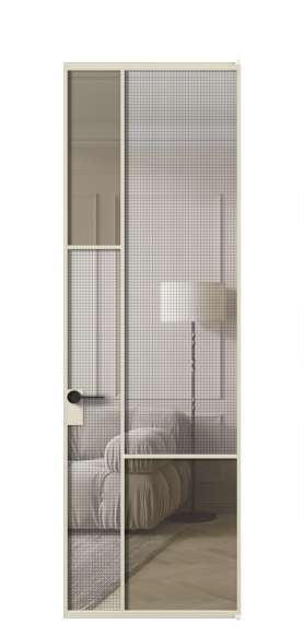 АЛПЛ041.13 Алюминий бежево-серый Декоративное стекло с сеткой "Mesh silver", триплекс, 6 мм + Прозрачное бронзовое стекло, триплекс, 6 мм