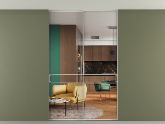Алюминиевые перегородки имеют единый профиль с алюминиевыми дверьми и легко сочетаются в одном пространстве, не перегружая его. Также их можно комбинировать в интерьере с полотнами из нашего стандартного ассортимента. Помимо этого, система алюминиевых перегородок и дверей координируется со стеновыми панелями Волховец.